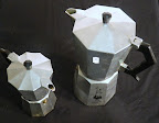 Blue and white bowl/coffee pot, coffee cups and saucers
